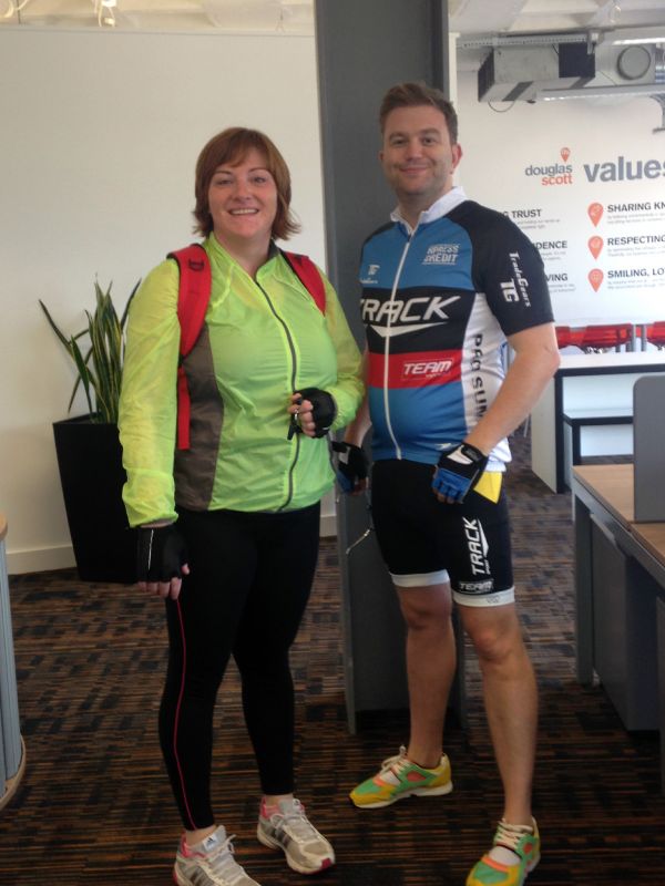 Here they all are. The brave chosen four who donned their Lyrca at some ungodly hour this morning and took to the mean streets of Manchester to burn some calories and do their small bit for the planet.