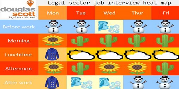 We looked back at nearly 3,000 legal sector job interviews that took place over the last 12 months and found out which days and times were generating the most positive outcomes.