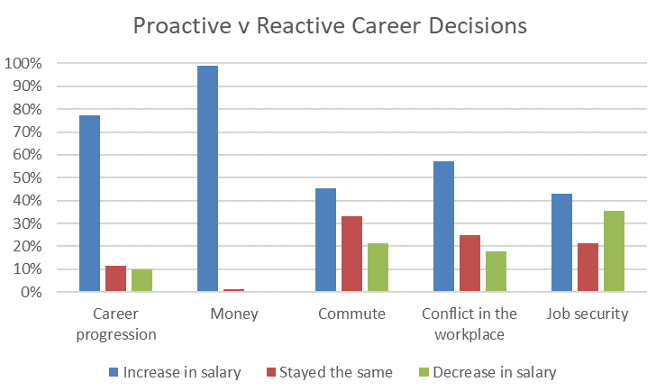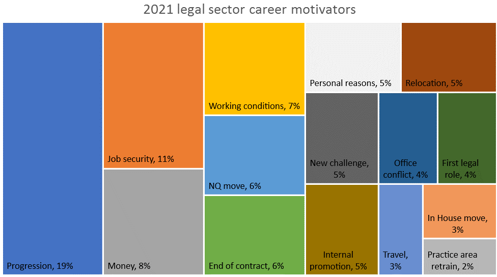 While 1 in 5 legal professionals cite career progression as the reason they changed jobs recently, 1 in 3 moves were reactive and included external factors such as job security, working conditions and office conflict.